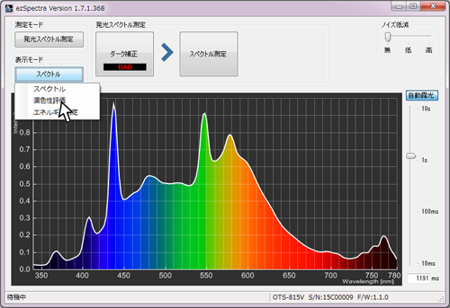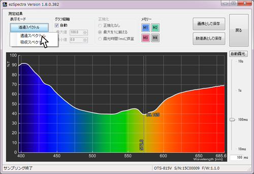 露光調整やアベレージング等、従来、分光器を扱う上で必要だった細かい設定は、すべて高度な演算によって自動的に処理されます。専門知識不要、分厚いマニュアルなど読まずに、簡単な操作で、発光スペクトルや、透過・吸収スペクトル、光源の演色性評価等を行うことができます。